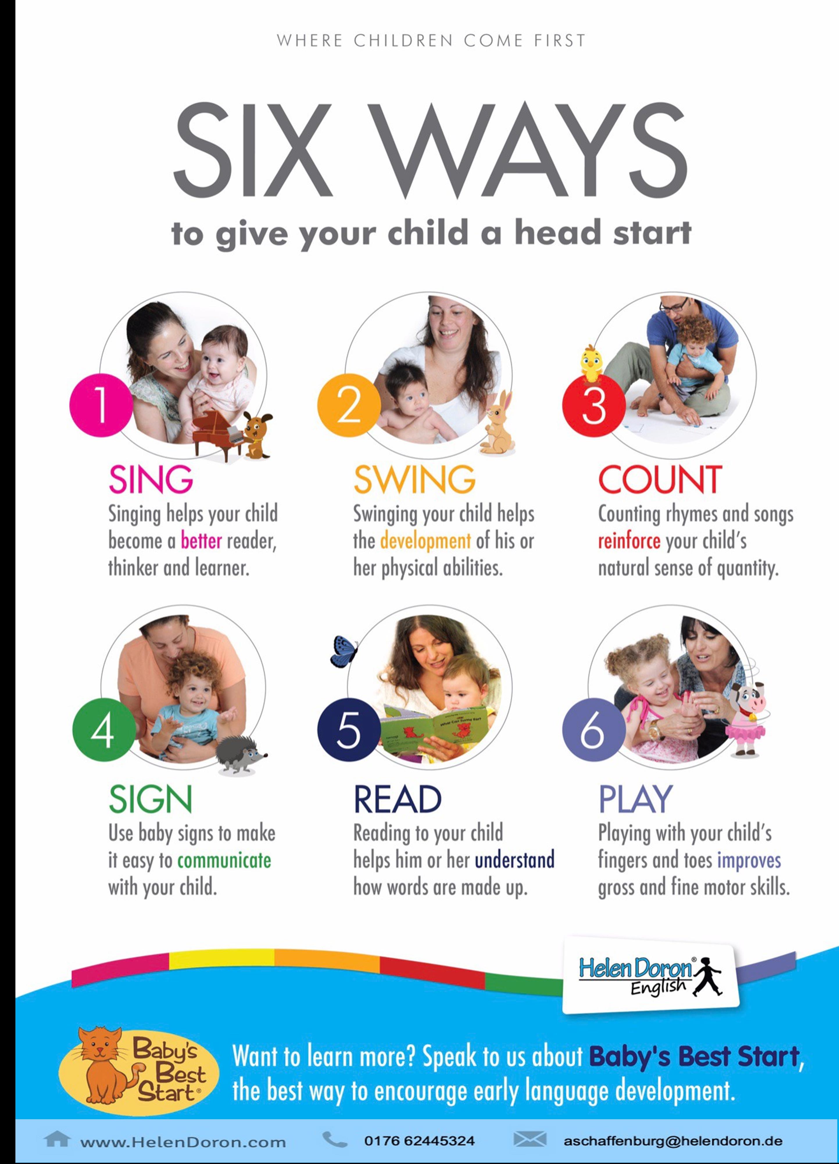 - Altersgerechte englische Lieder, Reime und Fingerspiele sowie das Tanzen machen Ihrem Baby Spaß und fördern sein Sprach- und Rhythmusgefühl. Der mehrsprachige Ansatz fördert ganz besonders das frühkindliche Wachstum von mehreren Sprachorganen, das wiederum den Grundstein für die analytischen Fähigkeiten und für die spätere allgemeine Lese- und Rechtschreibfähigkeit Ihres Kindes legt.